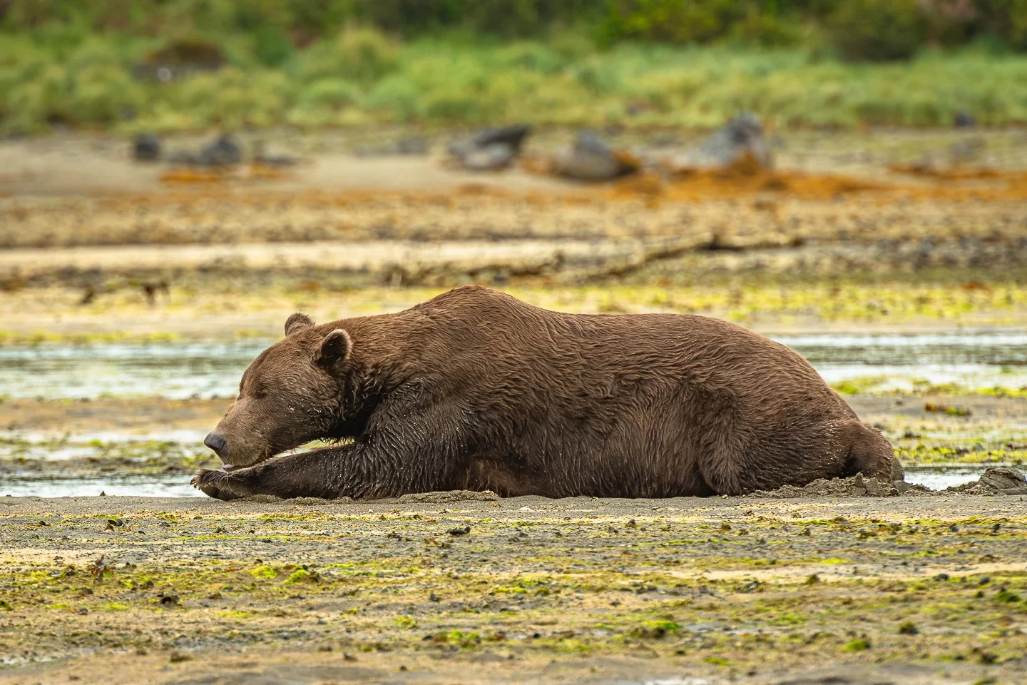 Basically, we’re all dipping into the same genetic grab bag, and pulling out whatever combination works best for where, and how, we live. Brooks Range Grizzlies, for instance, are the tiny 600 pound marathoners of the species, adapting for a broader feeding range and more efficient fat storage. Kodiaks and Coastal brown bears grow big and strong, because we almost don’t have to move at all. Our primary food source practically delivers itself, via mother nature’s version of Grubhub. Plus, competition for females is pretty fierce, and the big boys get the chicks.
